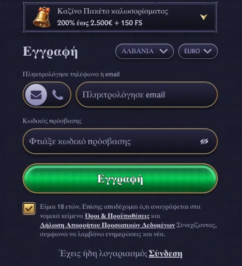 - Ενεργοποίηση του πακέτου καλωσορίσματος με μπόνους και free spins